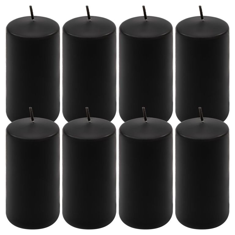 Nexos Černá parafínová svíčka 10 cm, 20 h hoření, sada 8 ks