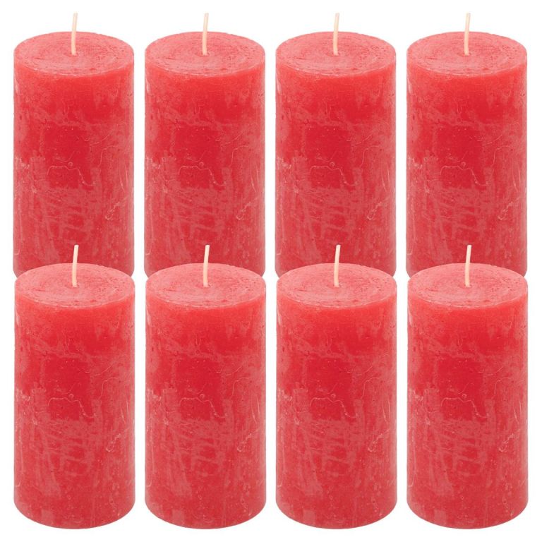 Nexos Červená parafínová svíčka rustikální 10 cm, 25 h, sada 8 ks