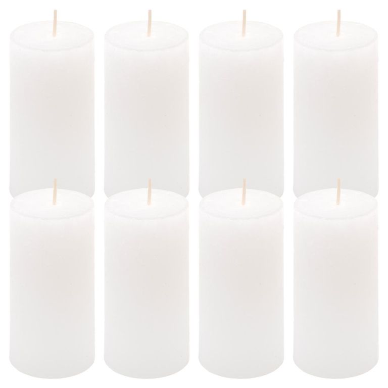 Nexos Bílá parafínová svíčka rustikální 10 cm, 25 h, sada 8 ks