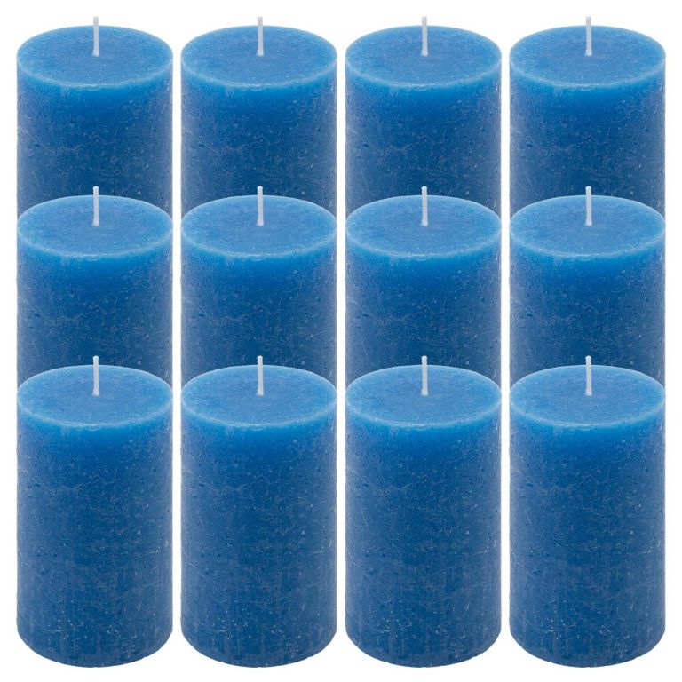 Nexos Modrá parafínová svíčka rustikální 11,5 cm, 40 h, sada 12 ks