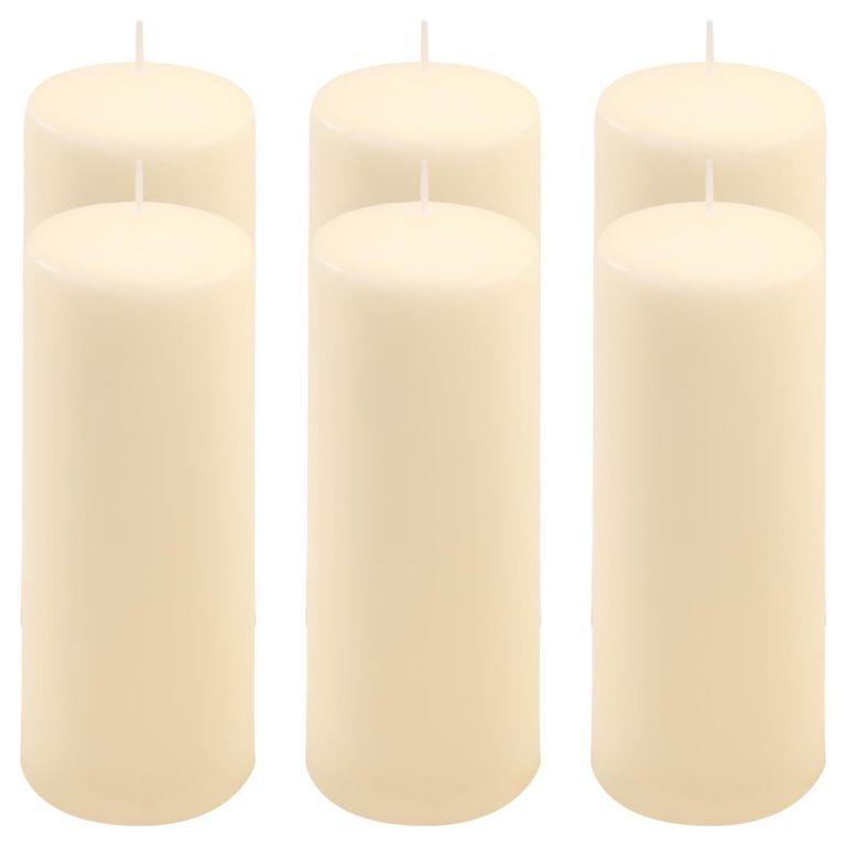 Nexos Krémová parafínová svíčka 25 cm, 30 h hoření, sada 6 ks