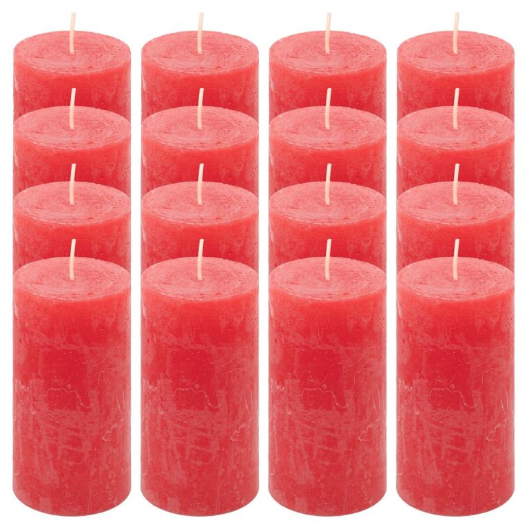 Nexos Červená parafínová svíčka rustikální 10 cm, 25 h, sada 16 ks