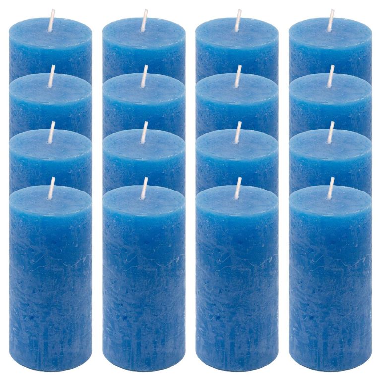 Nexos Modrá parafínová svíčka rustikální 10 cm, 25 h, sada 16 ks
