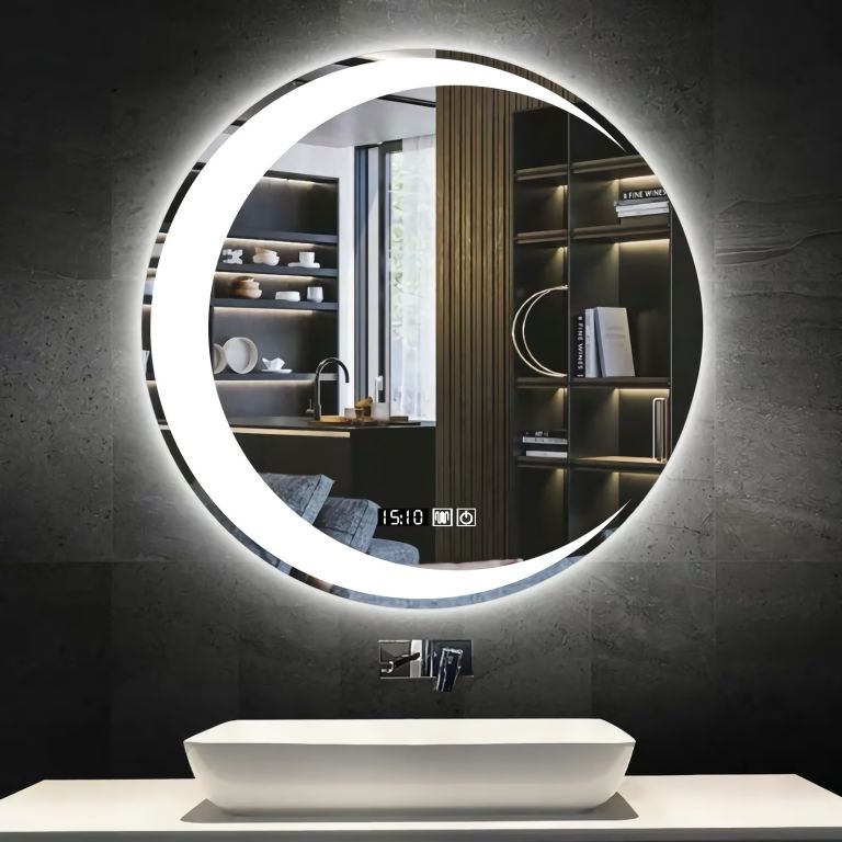 Ireda Kulaté koupelnové LED zrcadlo 70 cm s hodinami a odmlžováním