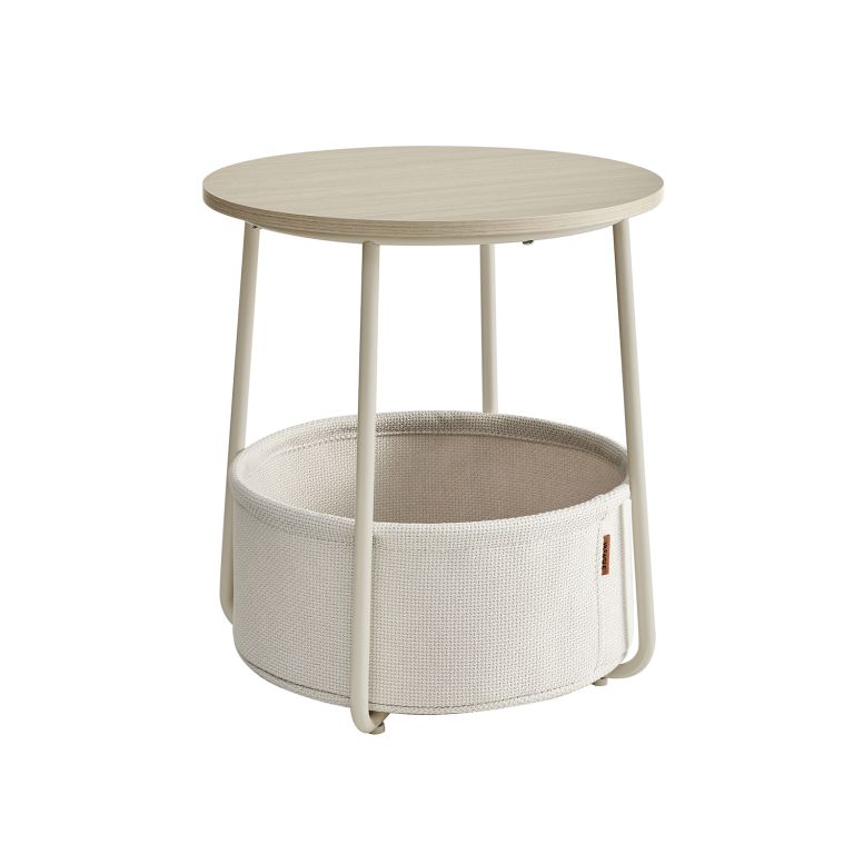 Vasagle Kulatý stolek s látkovým košem, 45x50 cm, krémově bílý