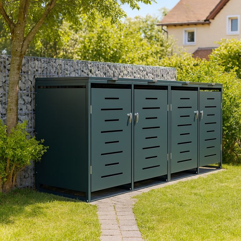 Juskys Kovový přístřešek pro 4 popelnice, antracit, 264×116×80 cm