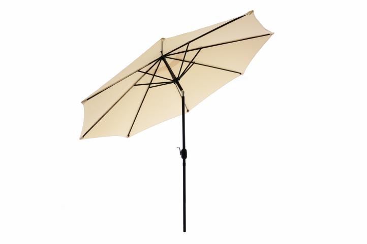 Klasický slunečník s klikou a kloubem má rozpětí téměř 3 metry (290 cm). Potah je vyroben z voduodpudivého polyesteru o gramáži 160 g/m² v béžové barvě. Ideální ochrana proti slunci pro Vaši dovolenou na pláži, na terase, balkonu,...