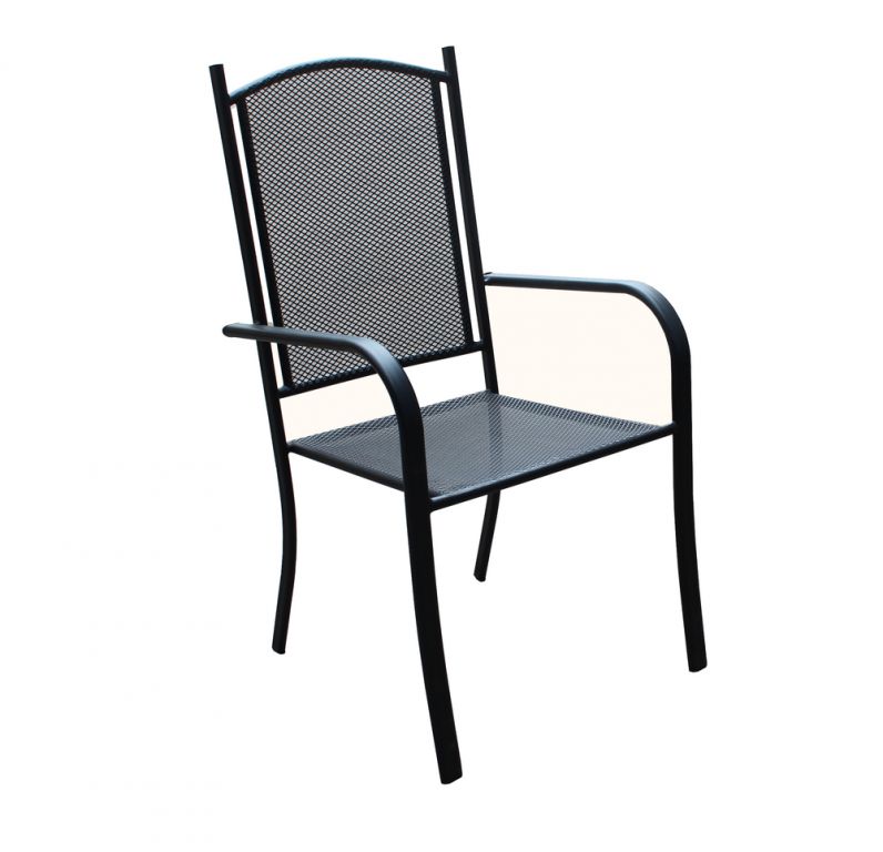 Rojaplast Zahradní kovové křeslo na terasu, černé, stohovatelné
