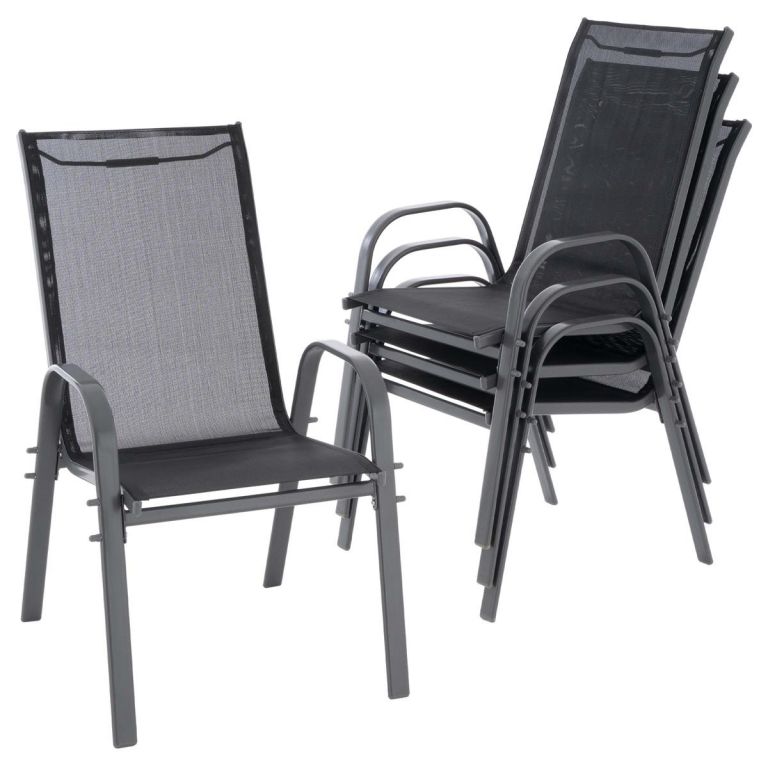 Sedák a opěradlo židle jsou vyrobeny z černého elastického textilního potahu. Židle na verandu je vybavena područkami na pravé a levé straně pro uvolněné sezení. Pokud se nepoužívá, lze několik židlí snadno naskládat na sebe a ušetřit...