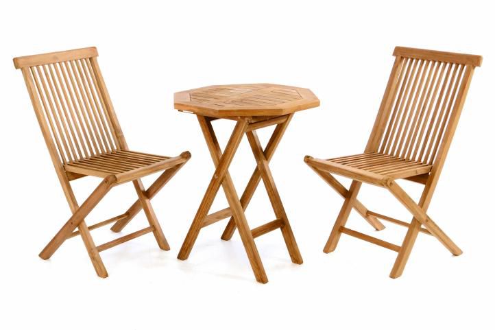 Divero Luxusní balkonový set Gardenay z týkového dřeva, 1 stůl + 2 skládací židle