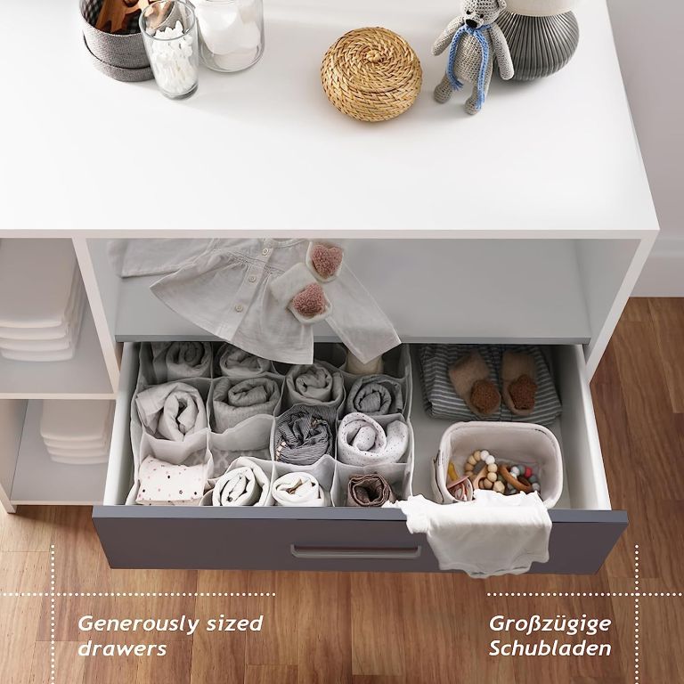 Přebalování na velké přebalovací ploše a pleny, oblečení, výrobky pro péči o dítě a další věci na dosah Vám i Vašemu dítěti zajistí pohodlí. Bílá barva tohoto dětského nábytku se snadno hodí do různých stylů interiérů. Jakmile vaše dítě přebalovacímu věku odroste, můžete přebalovací podložku tohoto multifunkčního kusu nábytku jednoduše trvale odstranit. Komoda tak může být používána i nadále a roste spolu s vývojem vašeho oblíbence.