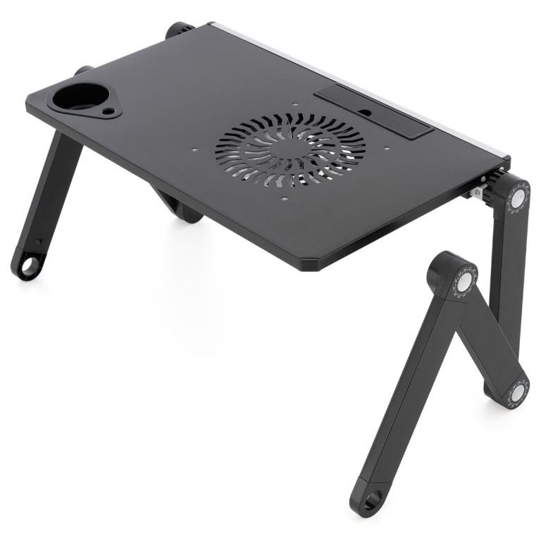 Dlouhodobé sezení zvyšuje riziko bolesti zad a krku. Náš stojan na notebook lze individuálně přizpůsobit vašim potřebám z hlediska výšky i sklonu, čímž se výrazně zvyšuje ergonomický komfort. Postavte stojan na notebook na stůl a pracujte pro změnu ve stoje. Tři klouby lze také snadno a variabilně nastavit tak, aby vám také umožnily pohodlně sedět na gauči, na podlaze nebo v posteli a užít si uvolněnou domácí kancelář. Díky integrovanému USB ventilátoru a hladkému povrchu bude mít váš notebook také výhody přímo z tohoto praktického příslušenství, protože se zvyšuje chladicí kapacita a snižuje se riziko přehřátí a tím i snížení výkonu počítače. Notebookový stůl se snadno přepravuje díky nízké hmotnosti a robustnímu materiálu. Hliníkový stůl je také vybaven integrovaným držákem nápojů. Doporučujeme tento model až do velikosti notebooku 15 palců.