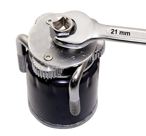 Celokovová konstrukce, povrchová úprava, zdrsnění (zuby) na upínacích ramenech pro pevný záběr při uvolňování nebo utahování olejového filtru. Klíč se nasadí na olejový filtr a pomocí ráčny (1/2") nebo stranového či nástrčného klíče (21 mm) se olejový filtr utáhne či povolí.