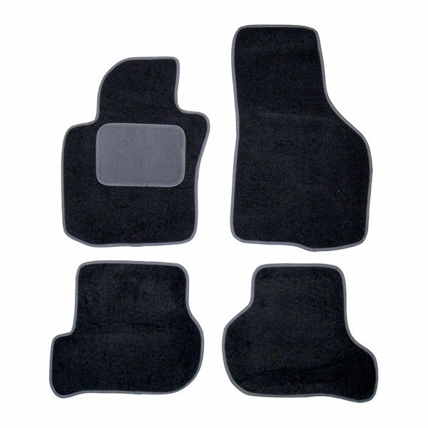 Přesné textilní autokoberce pro Škoda Octavia II., rok výroby od 2004. Sada 4 kusy (2 x přední, 2 x zadní díl). Mají černé provedení s šedým lemem a šedým zesílením koberce řidiče pod pedály.