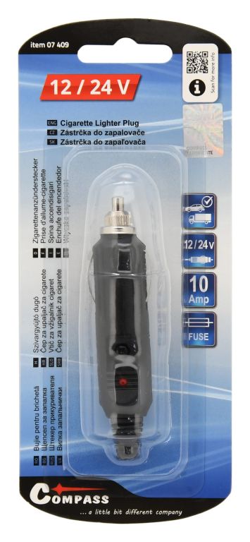 Univerzální zástrčka pro připojení spotřebičů do standardní zásuvky zapalovače automobilu.
