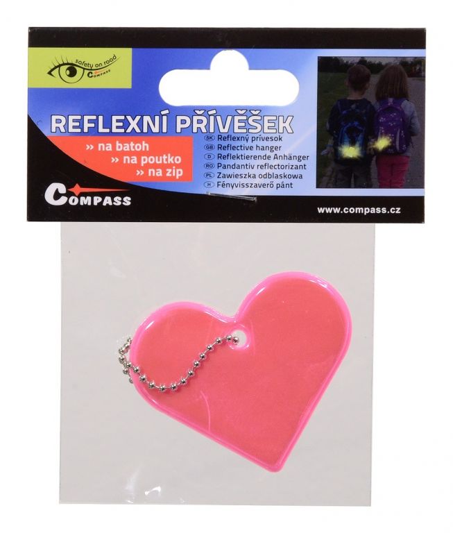 Reflexní přívěšek s rětízkem, vhodný k upevnění na oděv, na školní brašnu, na batoh, na kapsu, na zip apod. Na velkou vzdálenost dobře viditelný doplněk, vhodné i pro děti. Zejména za snížené viditelnosti či v šeru několikanásobně prodlužuje vzdálenost, na kterou řidič zpozoruje chodce.