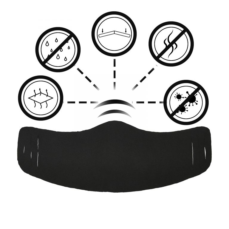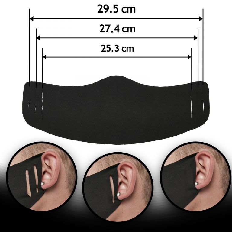 Nošení obličejové masku chrání vás a lidi kolem vás. Tato opakovaně použitelná textilní maska ​​se skládá z jedné vrstvy neporézní a prodyšné polyesterové tkaniny se třemi štěrbinami.