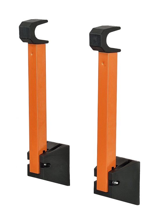 Dvoudílný, sklápěcí držák jízdního kola určený k montáži na stěnu. Držák s kovovou konstrukcí je tvořen dvěma sklápěcími rameny, s plastovým zakončením tvarovaným pro bezpečné uchycení rámu bicyklu. Montáž držáku se provádí do zdi, pomocí vrutů s hmoždinkami.