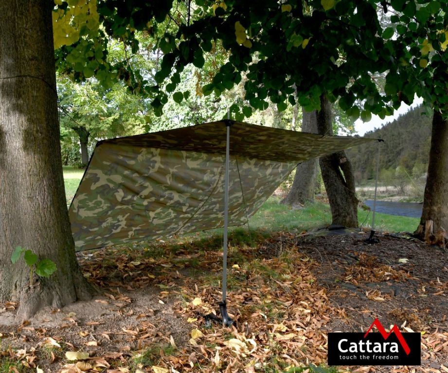 Celta je opatřena očky pro připevnění a vypnutí plachty, celtu tak lze (např. pomocí turistických hůlek) použít jako přístřešek, nebo závětří. Lehká celta v lesní kamufláži. Materiál společně s podlepenými švy zajišťují nepromokavé vlastnosti. Materiál byl otestován vodním sloupcem.