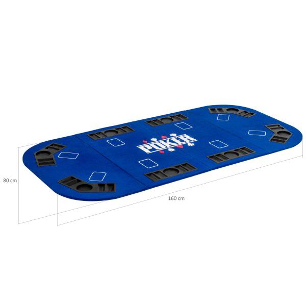 Velká skládací pokerová podložka na hraní Texas Holdem s osmi chip tray. Pokerová podložka je rychle a prostorově úsporně složená.