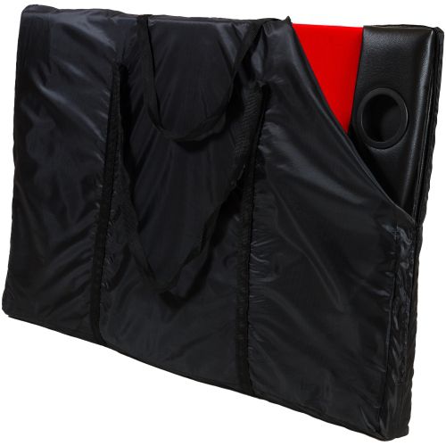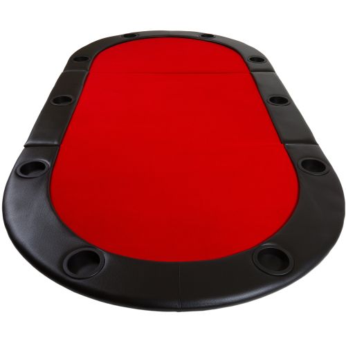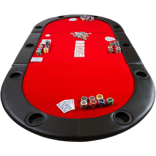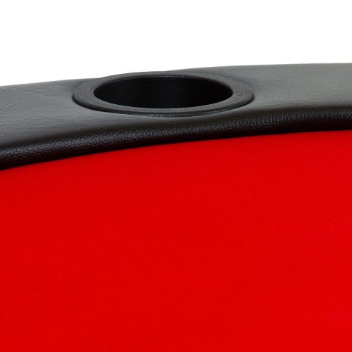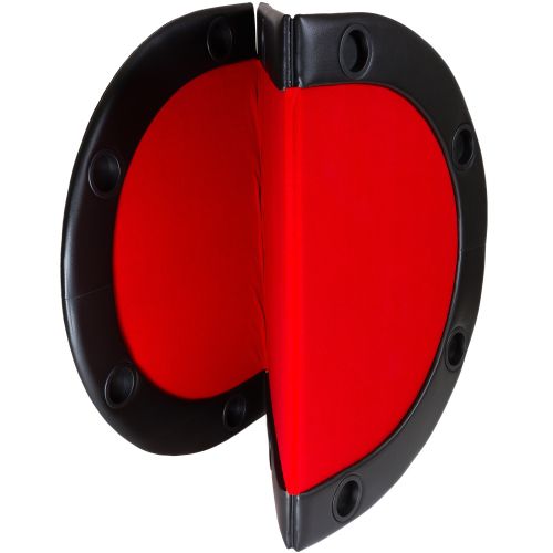 Ať už máte rádi jakýkoli typ pokeru nebo jiné karetní hry, tato podložka Vám udělá radost. Podložka je vyrobena z 11mm tlusté dřevovláknité desky a potažena je krásnou červenou plstěnou tkaninou. Díky polstrování na krajích můžete hrát celou noc a již nezažijete otlačené lokty a předloktí. Stůl je vhodný až pro 10 hráčů, přičemž na desce je umístěno 10 držáků nápojů. Desku vždy pouze stačí vyndat z obalu a rozložit, což zabere opravdu pár vteřin, po hře opět desku uklidíte.