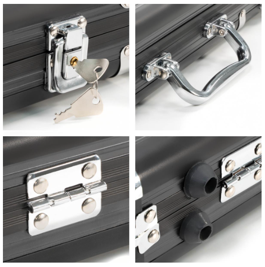 Pokerový herní set s 500 vysoce reflexními laserovými žetony v moderním designu. Čipy mají kovové jádro a hmotnost čipu 11g. Sada kufrů obsahuje pokerové mince (žetony), malý / velký blind a tlačítko dealera, 2 sady pokerových karet a 5 kostek. Veškeré příslušenství lze uložit do polstrovaného hliníkového pouzdra. Pevné a elegantní pouzdro z hliníku, má 2 uzamykatelné přezky. Pohodlně se do něj vejde veškeré herní náčiní. Herní sada obsahuje: 1 tlačítko dealera, 1 tlačítko pro „small blind“ a „big blind“, 5 kasinových kostek, 2 balíčky hracích karet po 54 dílcích, 500 pokerových žetonů po 12 gramech, které se liší v různých hodnotách a barvy a mají vysoce reflexní laserový tisk. Díky přiloženému německému hernímu návodu si u této společenské hry rychle užije spoustu zábavy i pokerový začátečník. Sada 500 poker obsahuje vše, co potřebujete pro příjemný večer pokeru. Vysoce reflexní laserové čipy mají kovové jádro s HMOTNOSTÍ ČIPU 12g s odpovídajícím potiskem. To ocení zejména ambiciózní hráči při skládání a míchání. Na tomto modelu jsme spolupracovali s profesionálními hráči pokeru, abychom zajistili optimální distribuci žetonů. Například v naší sadě nejsou žádné žetony s hodnotou 1, protože ty se v pokeru obvykle nepoužívají. V našem sortimentu máme velký výběr žetonů v různých provedeních a s různými nominálními hodnotami, stejně jako podložky pod stůl, pokerové stoly a další příslušenství. Nevhodné pro děti do 7 let, nebezpečí udušení. Používejte pod dohledem dospělé osoby.