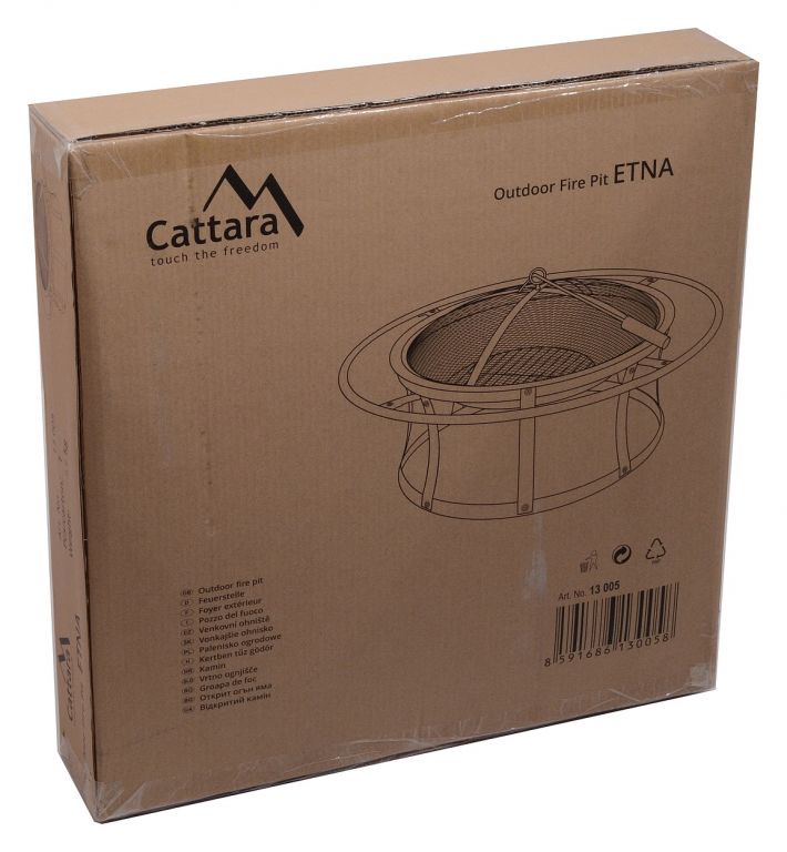Konstrukce ohniště je vyrobena z kvalitní oceli s vysokoteplotním černým a mosazným nátěrem. Rošt je z ocelové mřížky se smaltovanou povrchovou úpravou. Speciálně tvarovaný poklop s pletivem poslouží jako ochrana před jiskrami, což výrazně zvyšuje bezpečnost a pohodlí. Přiložen je i kovový pohrabáč s dřevěnou rukojetí, který lze použít jak k urovnání ohně, tak i k snadnému sundání poklopu. Ohniště je vybaveno okrajovým prstencem, který poslouží jako madlo pro přenášení. Pro zajištění ještě větší stability jsou nohy ohniště navzájem propojeny.