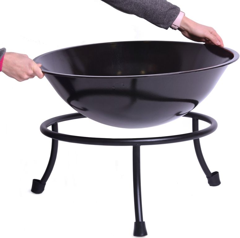 Praktické ohniště na terasu bytu či na travnatou loučku. Vzhledem ke třem nosným opěrkám se nemusíte bát žárem spálené trávy a vypálených kruhů. Z nádoby lze snadno vysypat a setřít popel ze spáleného dřeva, připečeného jídla či marinády a oleje.