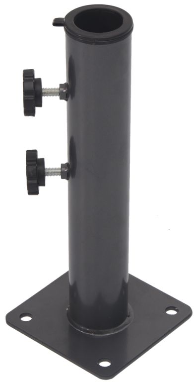 1. pro slunečníky standard (se středovou tyčí): doukoupíte držák ke slunečníku, připevníte k podstavci šrouby a používáte jako běžný podstavec