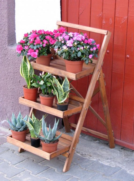 Váš dotaz na zboží Dřevěný poličkový schůdkový květináč, hnědý