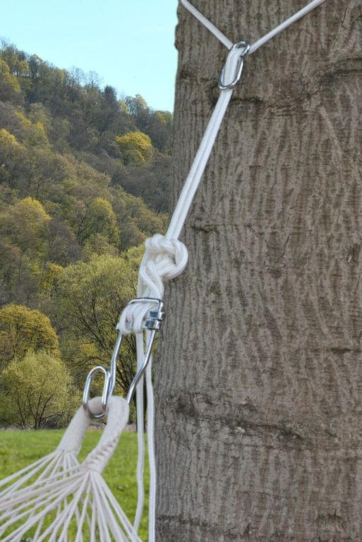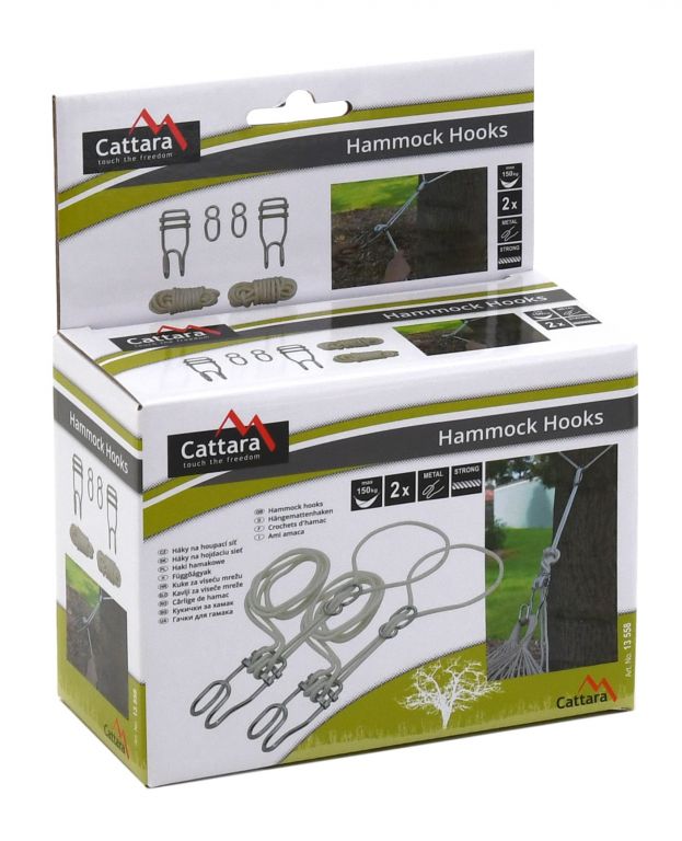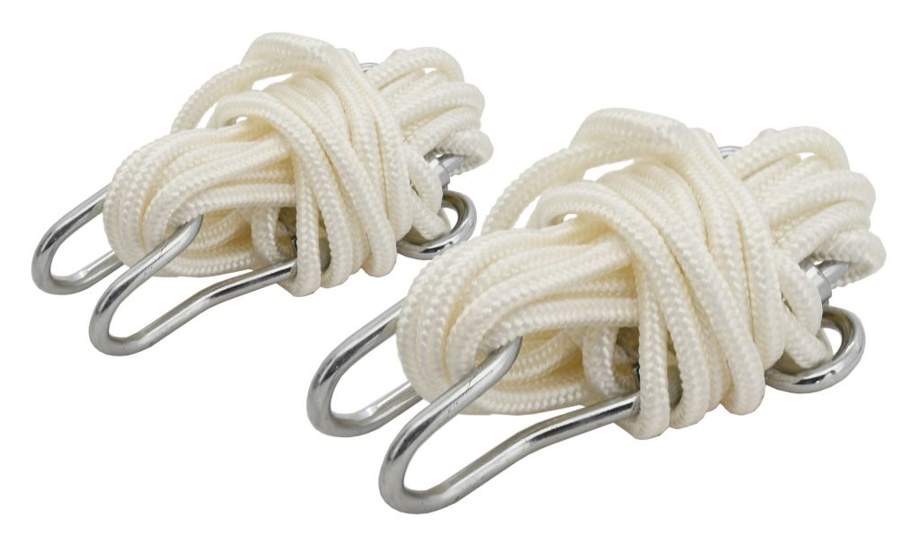 Sada pro zavěšení houpací sítě mezi dva stromy. Složení párem kovových háků kompletovaných se silnými lany.