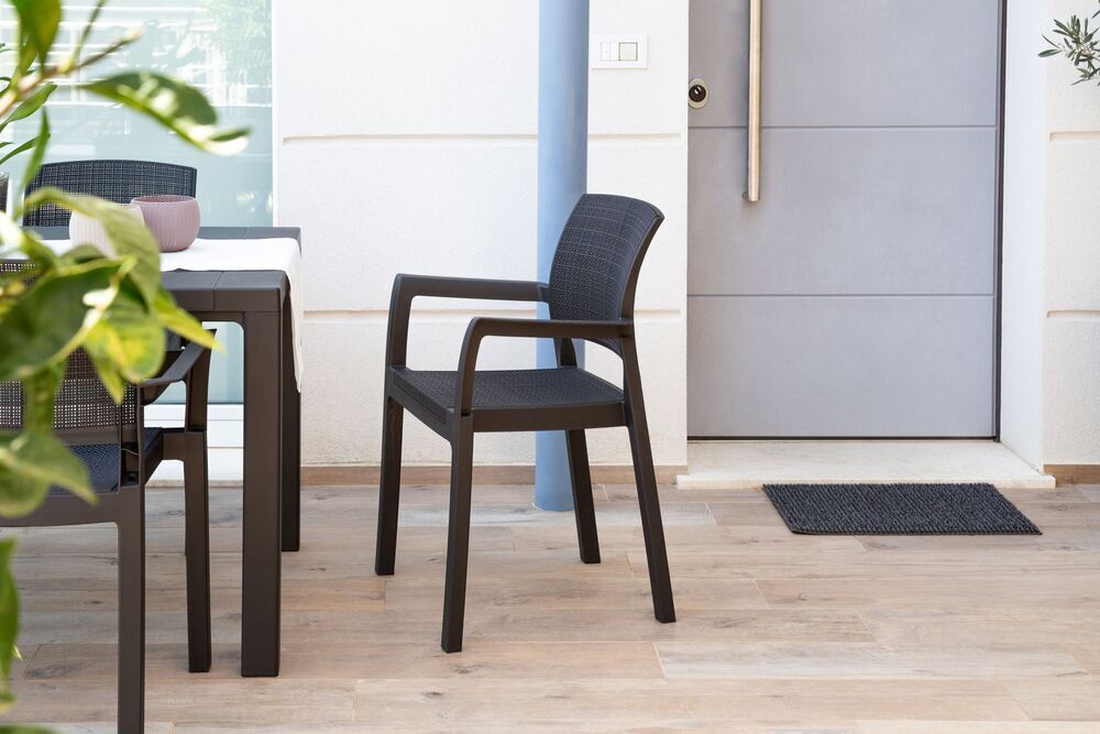Zahradní plastové křeslo ALBA s područkami - Pohodlí, pevnost a styl v jednom! LEHKOST A PEVNOST: I přes svou nízkou hmotnost je křeslo ALBA velmi pevné a stabilní. Díky tomu můžete snadno přesunovat a umístit ho tam, kde právě potřebujete. ELEGANTNÍ DESIGN: Opěrka a sedák křesla jsou elegantně provedeny v oblíbené imitaci ratanu, což dodává vaší zahradě nebo terase moderní a stylový vzhled. SNADNÁ ÚDRŽBA: Materiál tohoto křesla je vyroben z pevného recyklovaného plastu, což zajišťuje odolnost vůči nepříznivým povětrnostním podmínkám a UV záření. Údržba je snadná a rychlá, stačí jednoduše otřít vlhkým hadříkem. STOHOVATELNOST: Křeslo lze snadno skládat a stohovat, což z něj dělá praktickou volbu pro uskladnění mimo sezónu. BAREVNÉ PROVEDENÍ: Grafitové provedení křesla ALBA je univerzální a skvěle doplní mnohé stoly či sestavy v této barvě, což Vám umožní vytvořit elegantní a vkusné venkovní prostředí. Křeslo ALBA - spojení pohodlí, funkčnosti a stylového designu. Vytvořte si svůj vlastní relaxační ráj v zahradě s naším křeslem ALBA!