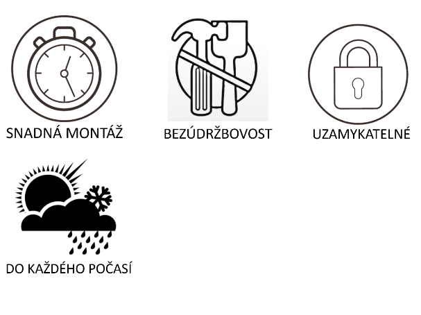 Pevné víko navíc poskytuje dodatečný prostor pro sezení. Jednoduché otevírání víka je zajištěno pomocí hydraulických pístů. Box je uzamykatelný a pro jednoduchou manipulaci slouží boční rukojeti. Jeho montáž je velmi jednoduchá a nevyžaduje žádné specializované nástroje. Box je odolný vůči nepříznivým povětrnostním podmínkám. Výborně doplní a rozšíří prostor u Vašeho zahradního domku.