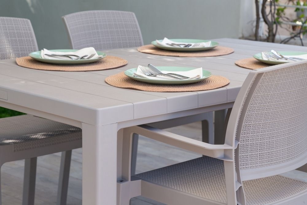 ODOLNOST VŮČI POČASÍ Stůl je vyroben z recyklovaného plastu, což znamená, že nejen vytváříme krásný nábytek, ale také přispíváme k ochraně životního prostředí. Jeho odolnost vůči UV záření a nepřízni počasí zajišťuje, že si budete moci užívat jeho krásy a praktičnosti po mnoho let.