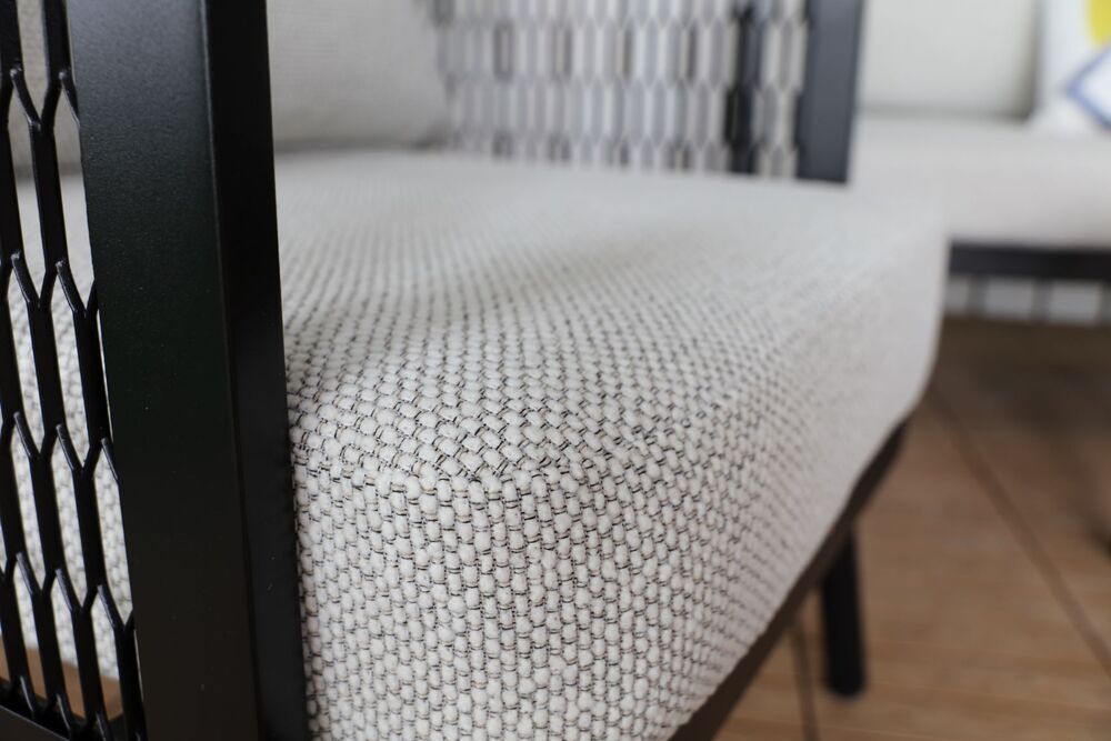 Velmi pohodlné podušky z předené tkaniny (polyester 460g/m2, vodu odpuzující tkanina) s molitanovou výplní (12 cm) jsou odolné UV záření. Všechny podušky jsou vybaveny zipy, díky kterým můžete polyesterový potah jednoduše sundat.