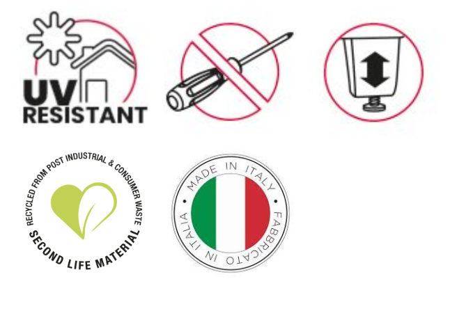 LEHKOST A PEVNOST: Stůl byl vyrobem v samém srdci Itálie z pevného recyklovaného plastu, což znamená, že nejenže získáváte krásný nábytek, ale také pomáháte chránit naši planetu. S matným povrchem je stůl ideálním místem pro pohodlné posezení čtyř osob.