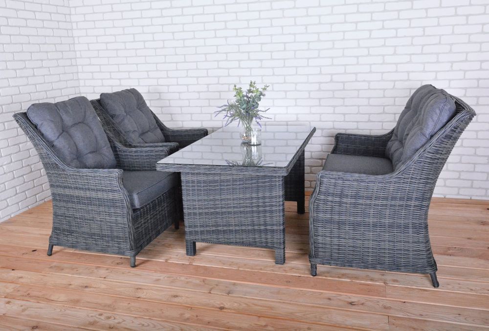 Luxusní souprava z kvalitního umělého ratanu, který odolává UV záření a teplotě od +50 °C do -10 °C.