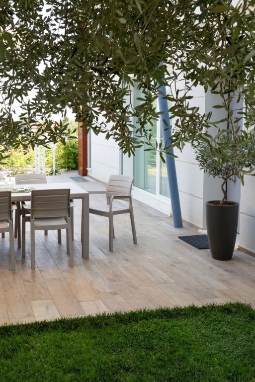 ELEGANTNÍ DESIGN: Opěrka a sedák křesla jsou elegantně provedeny v oblíbené imitaci dřeva, což dodává vaší zahradě nebo terase stylový vzhled.