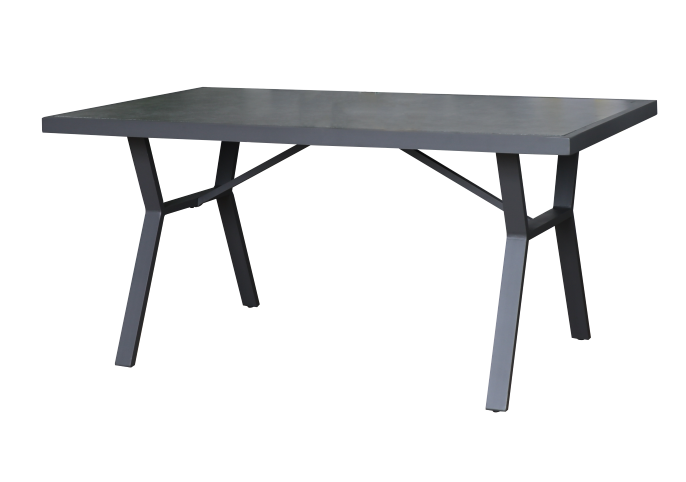• materiál: grafitová hliníková konstrukce, deska stolu z hliníku a pryskyřice AH02, tmavě šedé podušky z předené tkaniny (polyester)