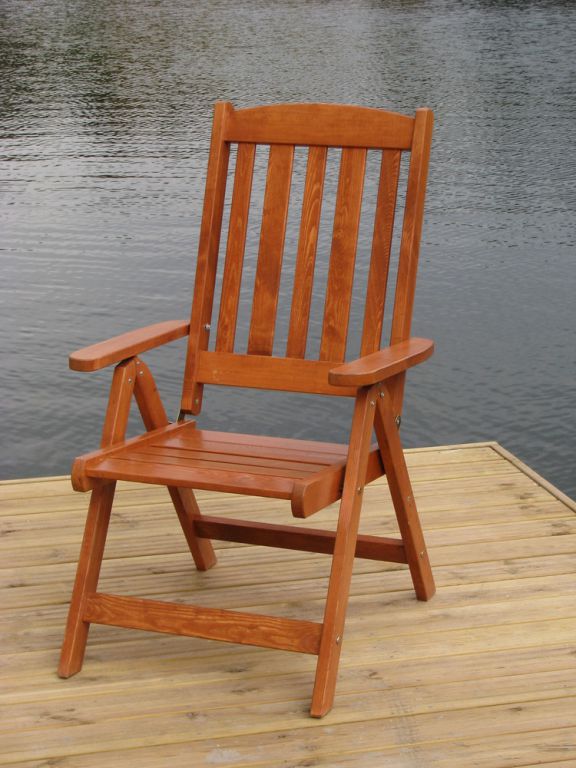 Polohovací zahradní křeslo z lakovaného borovicového dřeva. Vynikající zpracování a použité spojovací kování zajišťují dlouhodobou funkčnost i pevnost křesla.FSC certifikace - zaručuje kvalitu materiálu. Do setu je možné zakoupit i stůl, lavici.