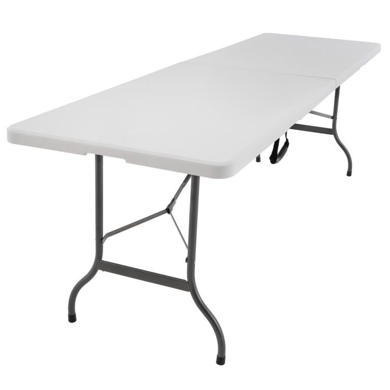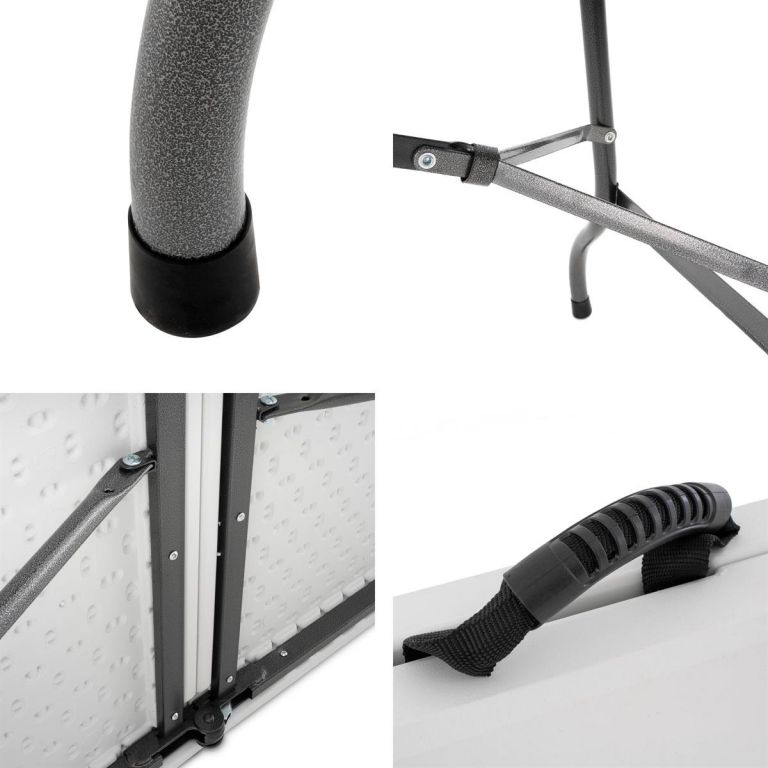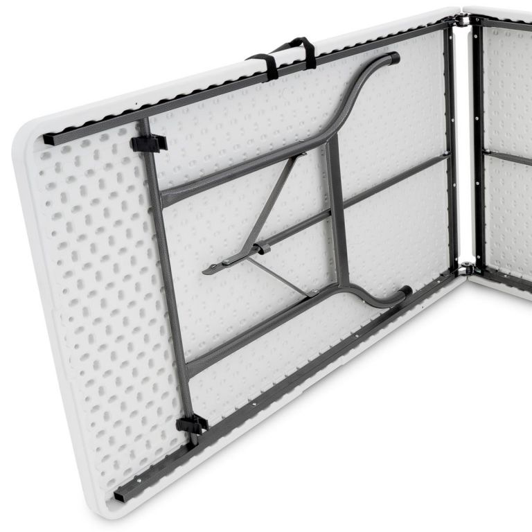 Elegantní, vysoce stabilní a extra prostorný zahradní skládací stůl s kovovým rámem a odolnou plastovou deskou v bílé barvě. Díky rychlému složení a snadné přepravě je ideální na terasu, zahradu i při cestování.